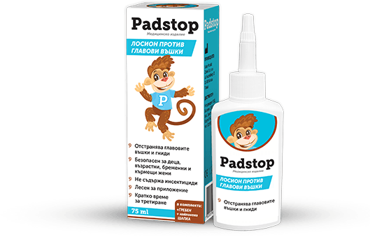 ПАДСТОП съдържа 100% диметикон, който бързо елиминира проблема с въшките.